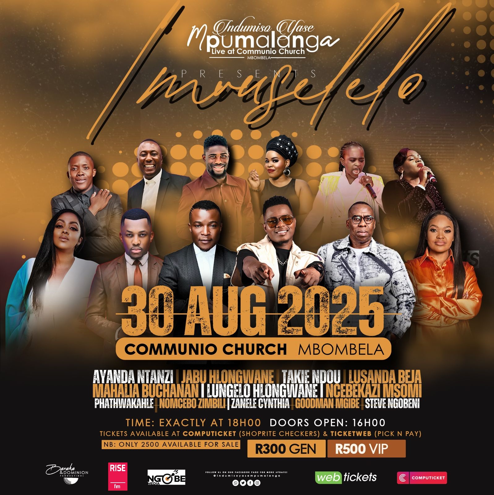 RISE fm proudly partners with Indumiso Yase Mpumalanga 2025, a powerful live gospel experience hosted at Communio Church in Mbombela. Expect an unforgettable night of praise and worship, led by some of the most anointed voices in South African gospel.